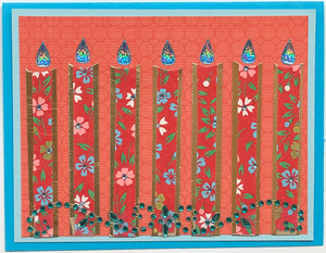 One of a Kind. Art card.Happy Birthday. Embellished. Tissue overlay. Dimensional. Frameable. Reusable. Envelope. Blank, detachable message slip. Handcrafted in Hawai`i.