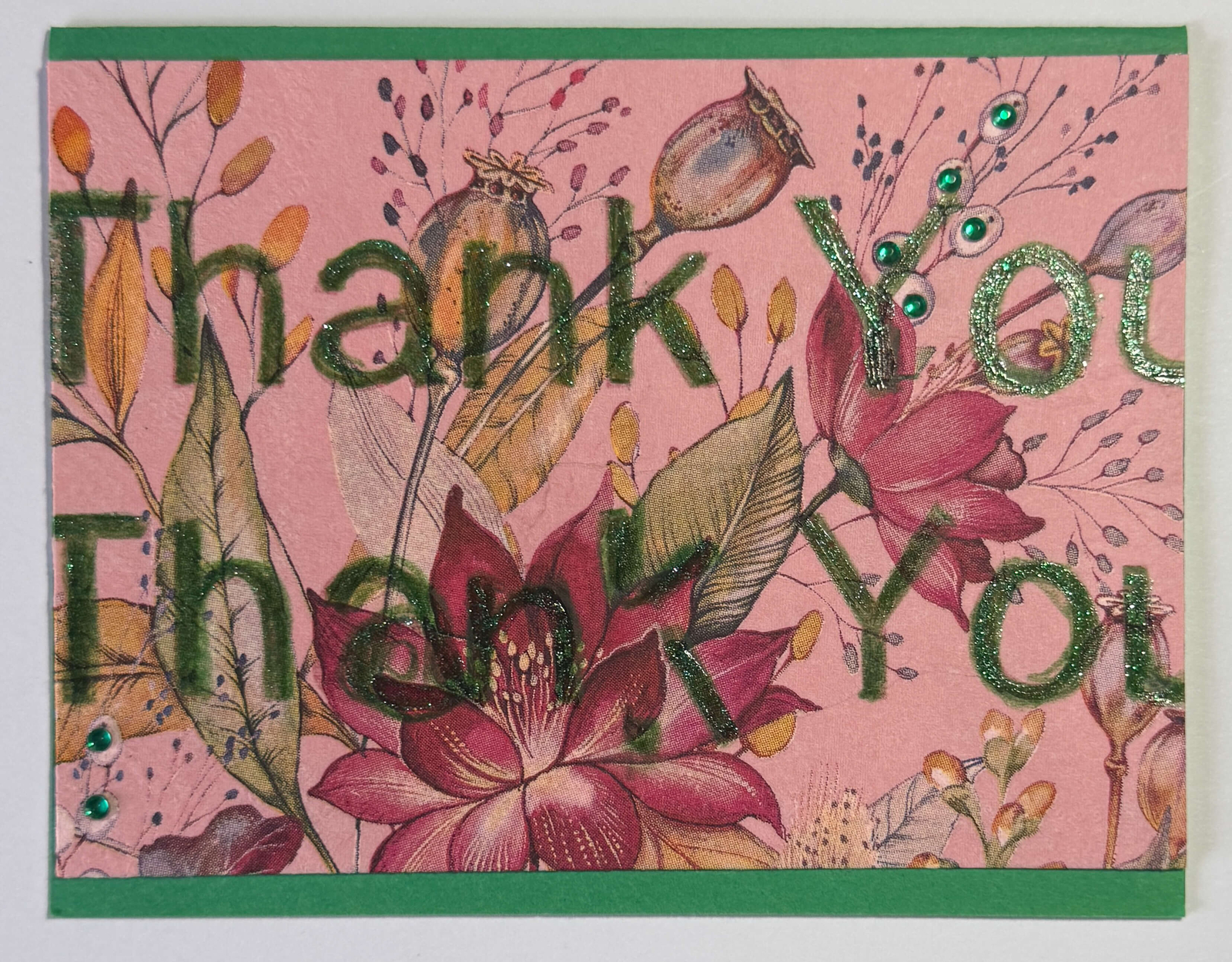 One of a Kind. Art card. Double Thanks Without Limits. Tissue overlay. Embellished, paint, colored pencil. . Dimensional. Frameable. Reusable. All occasion. Envelope. Blank, detachable message slip. Handcrafted in Hawai`i. (4.25" W x 5.5" H).