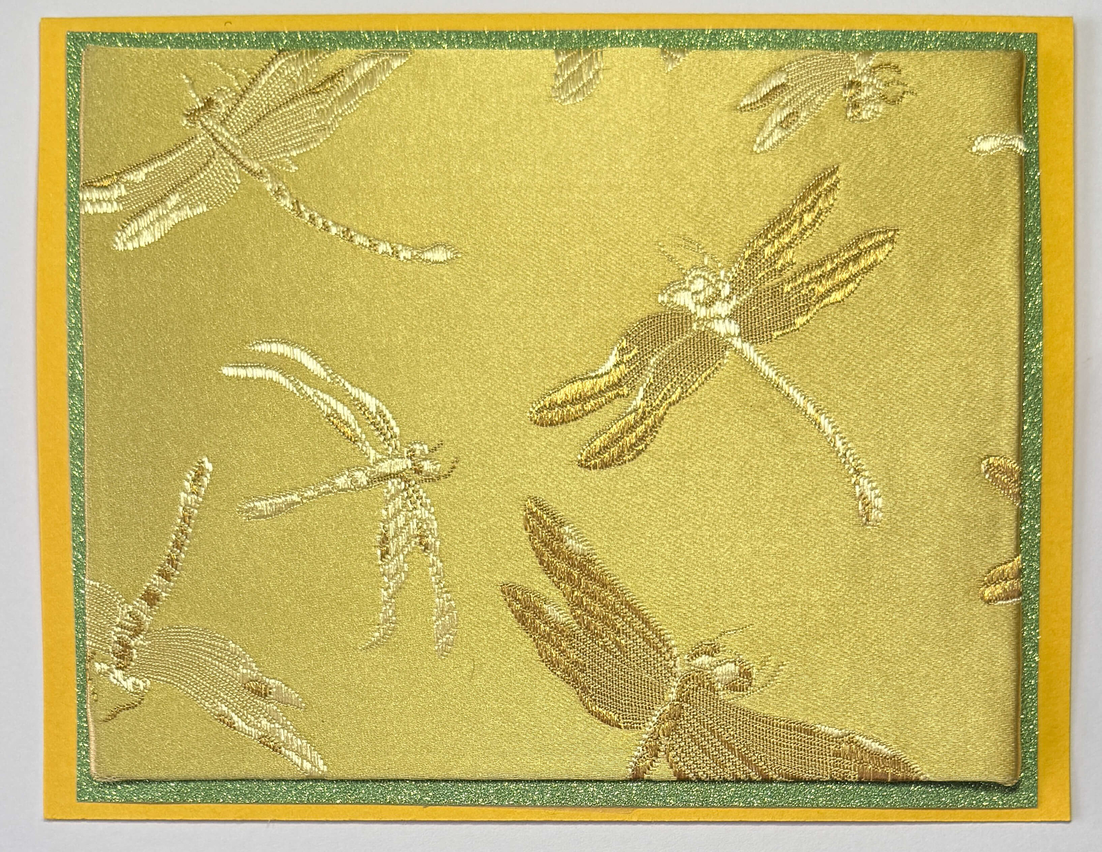 Art card. One Of A Kind. Dragonfly on embroidered silk. Dimensional. Frameable. Reusable. All occasion. Envelope. Blank, detachable message slip. Handcrafted in Hawai`i.