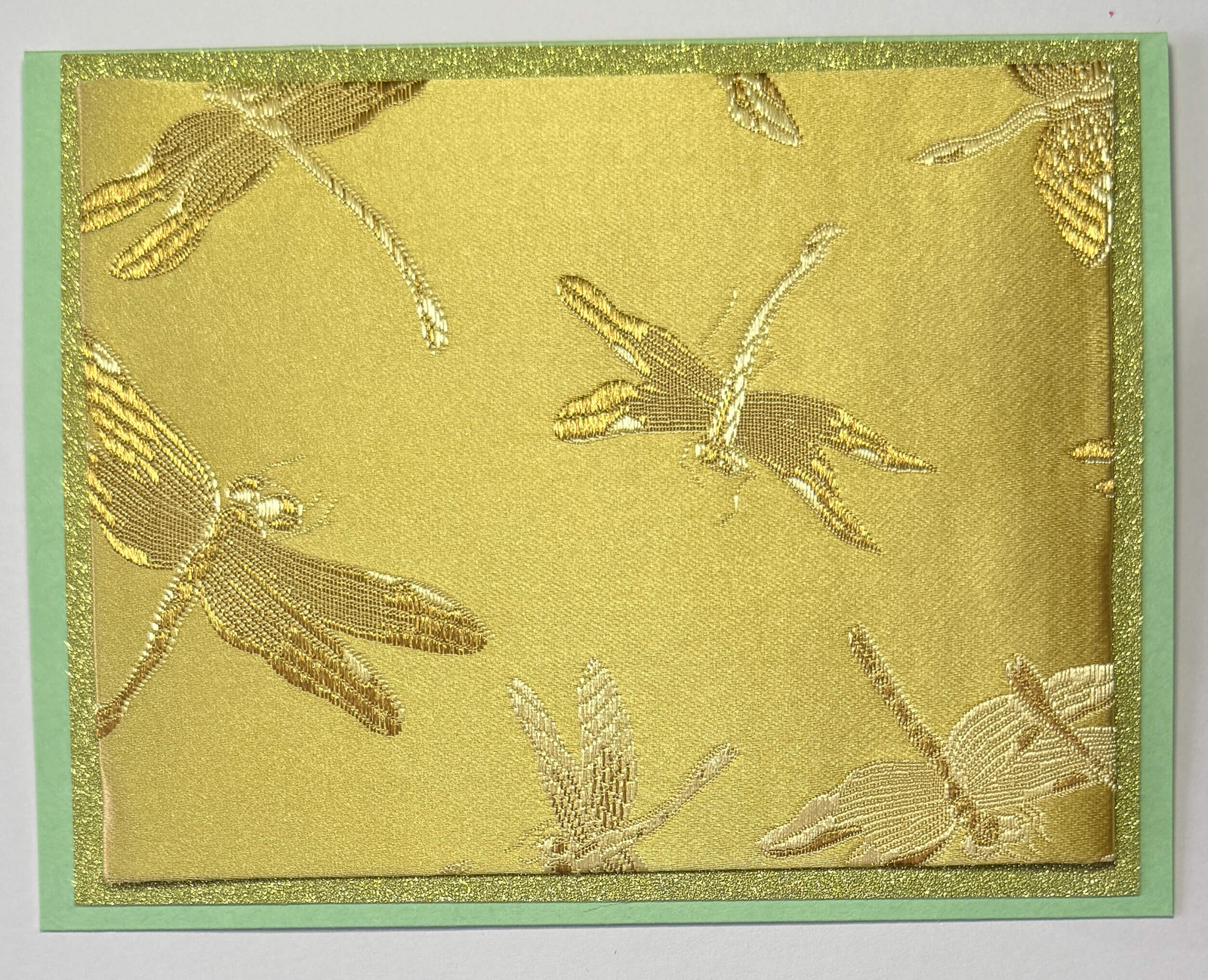 Art card. One Of A Kind. Dragonfly on embroidered silk. Dimensional. Frameable. Reusable. All occasion. Envelope. Blank, detachable message slip. Handcrafted in Hawai`i.