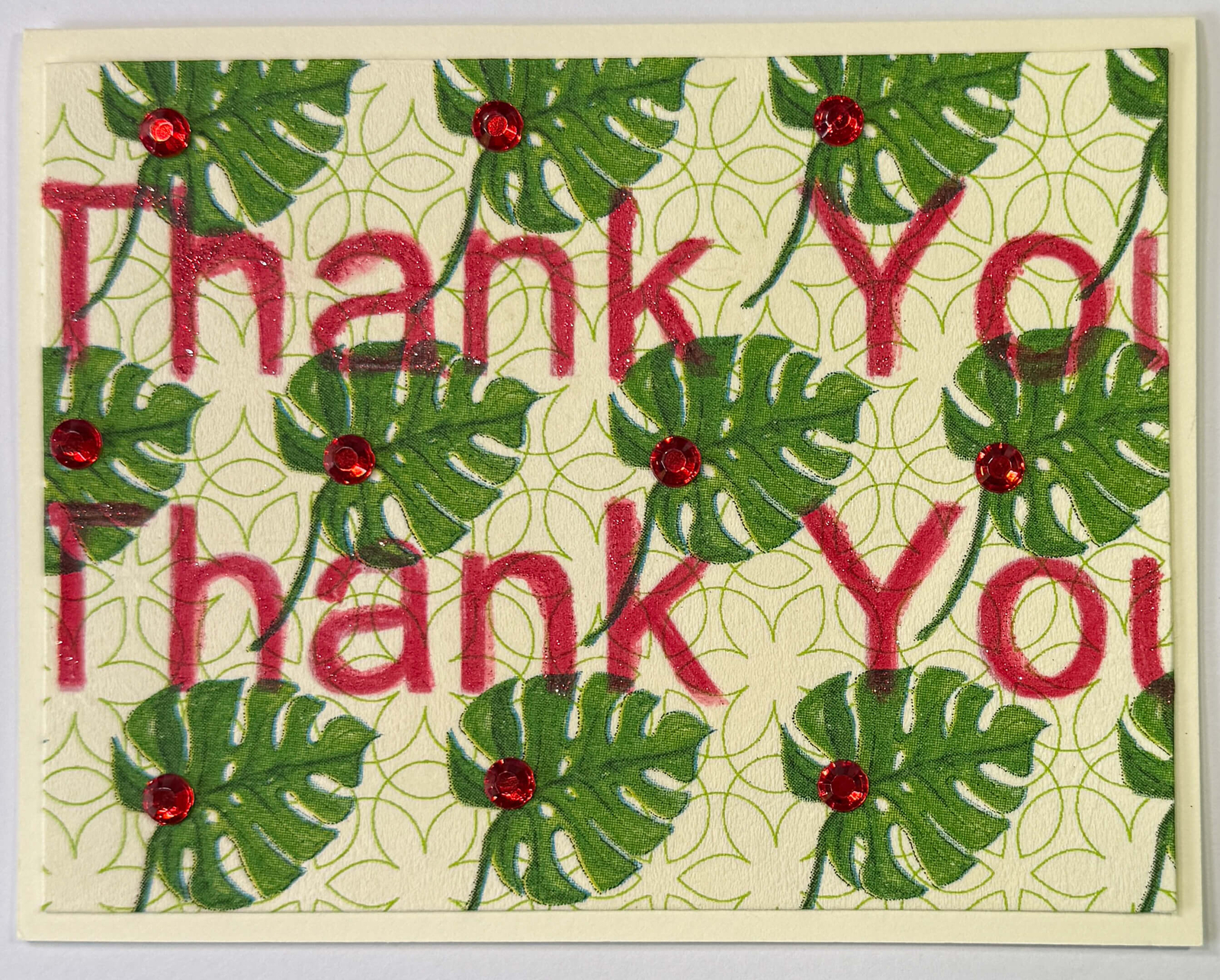 One of a Kind. Art card. Double Thanks Without Limits. Tissue overlay. Embellished, paint, colored pencil. . Dimensional. Frameable. Reusable. All occasion. Envelope. Blank, detachable message slip. Handcrafted in Hawai`i. (4.25" W x 5.5" H).