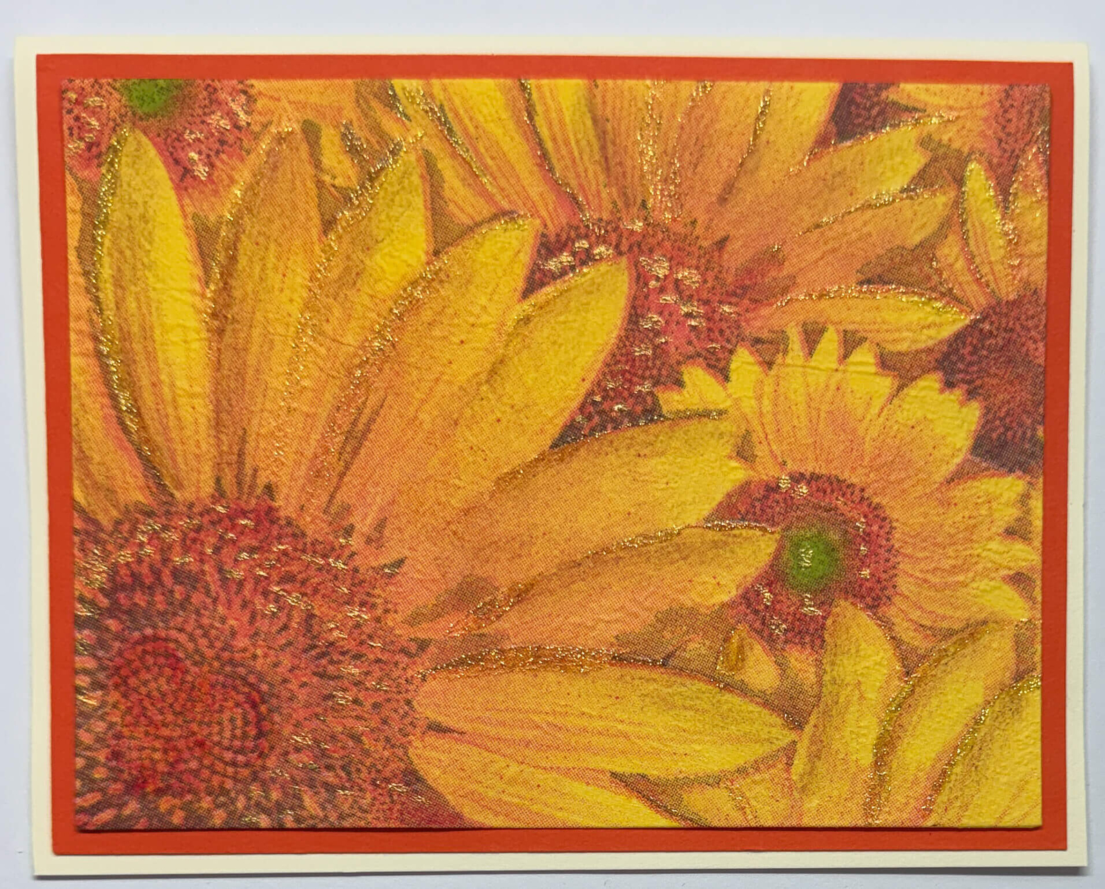 Tropical Impression. Art Card. Hawai`i inspired designs. Embellished. Mounted on card stock. Printed tissue or fabric. Frameable. Reusable. All occasion. Envelope. Blank, detachable message slip. Handcrafted in Hawai`i.