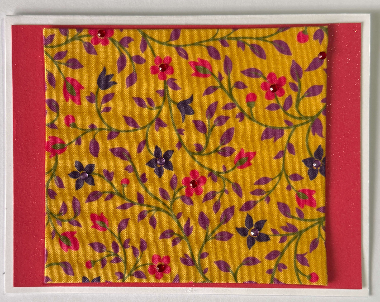 FabriCard. New Fabric. Hand-cropped. Fabric wrapped and mounted on white card stock. Frameable. Reusable. All occasion. Envelope. Blank, detachable message slip. Handcrafted in Hawai`i.