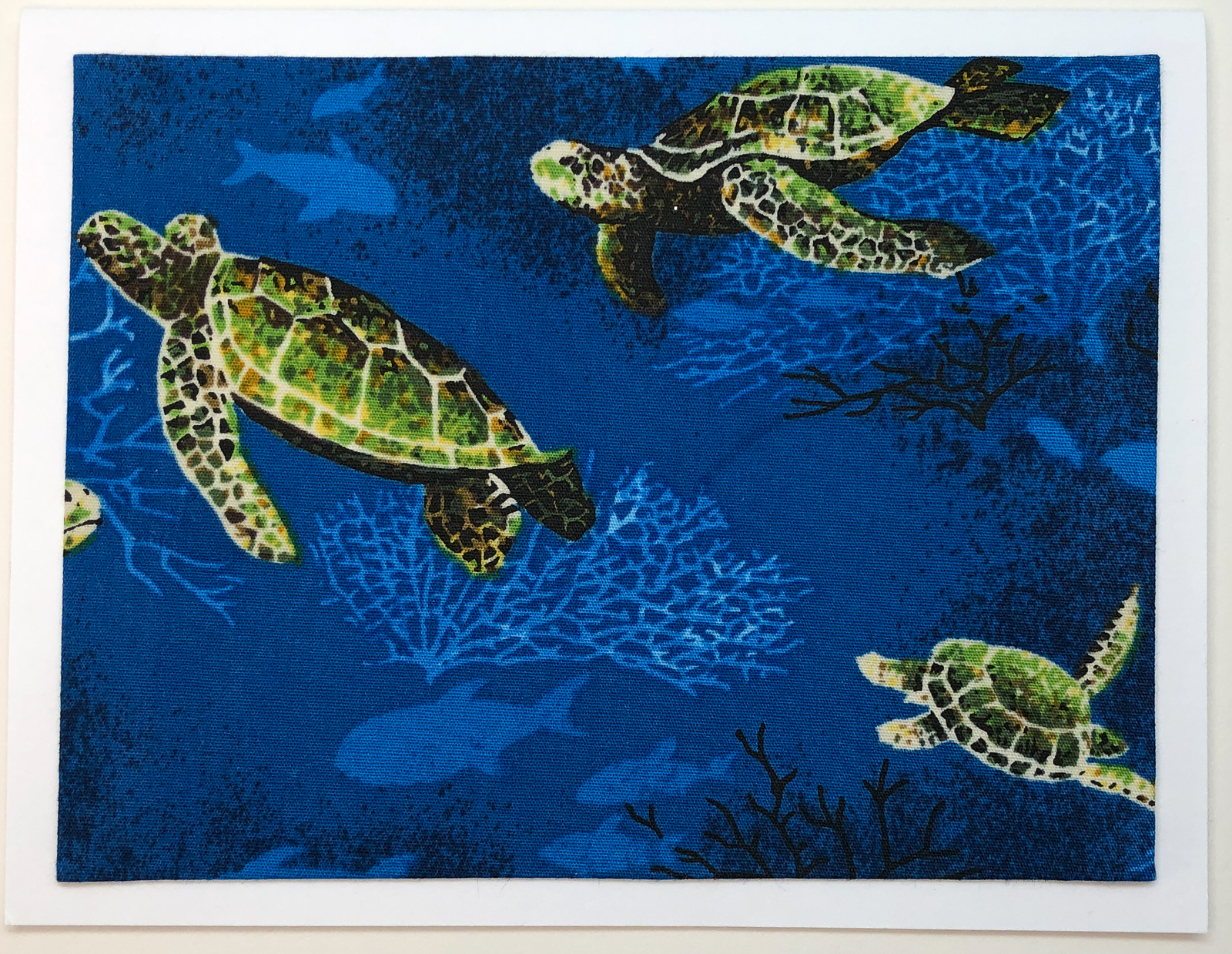 FabriCard. New Fabric. Hand-cropped. Fabric wrapped and mounted on white card stock. Frameable. Reusable. All occasion. Envelope. Blank, detachable message slip. Handcrafted in Hawai`i.