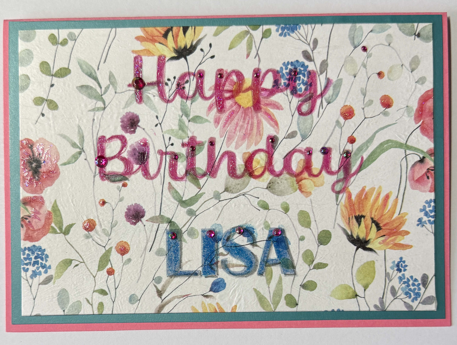 One of a Kind. Art card.Happy Birthday. Embellished. Tissue overlay. Dimensional. Frameable. Reusable. Envelope. Blank, detachable message slip. Handcrafted in Hawai`i.