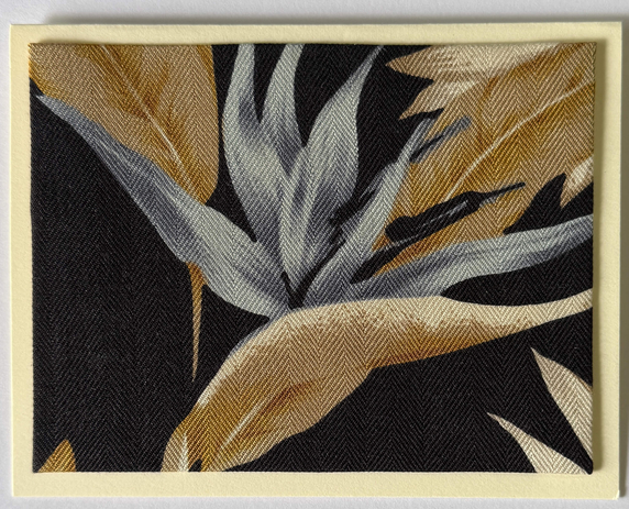 One of a Kind. Art Card. Recycled Aloha shirt fabric. Frameable. Reusable. All occasion. Envelope. Blank, detachable message slip. Handcrafted in Hawai`i.