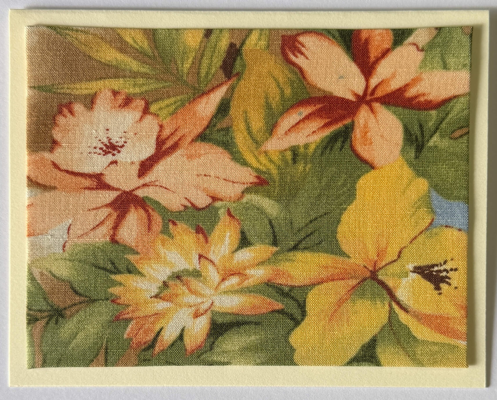 One of a Kind. Art Card. Recycled Aloha shirt fabric. Frameable. Reusable. All occasion. Envelope. Blank, detachable message slip. Handcrafted in Hawai`i.